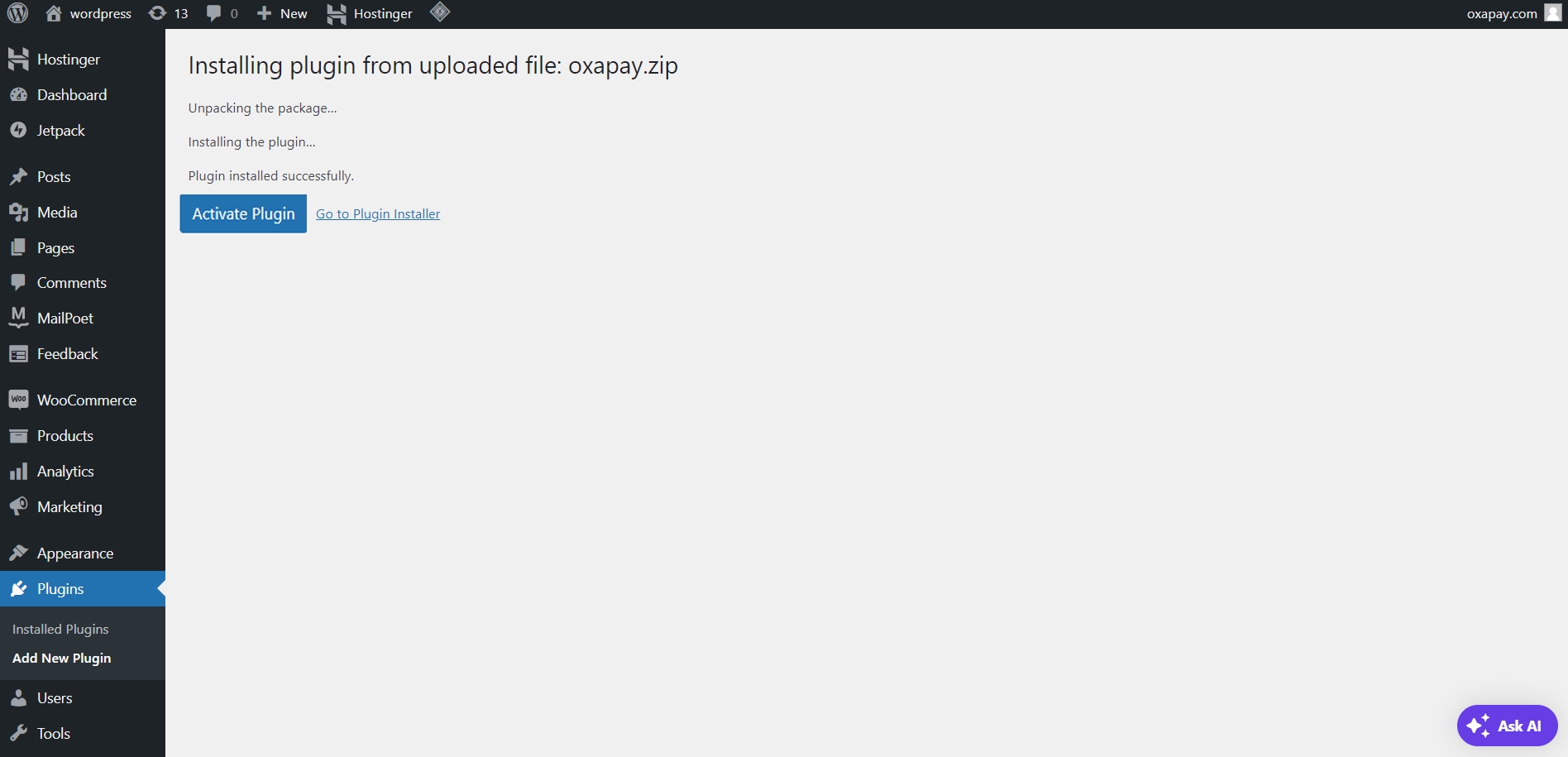 Once the plugin is installed, click on "Activate Plugin" to enable it.