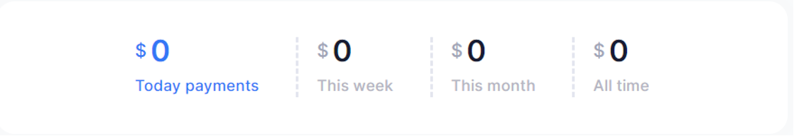 In this section, you can see the total value of the merchant’s transactions for today, this week, this month, and overall.