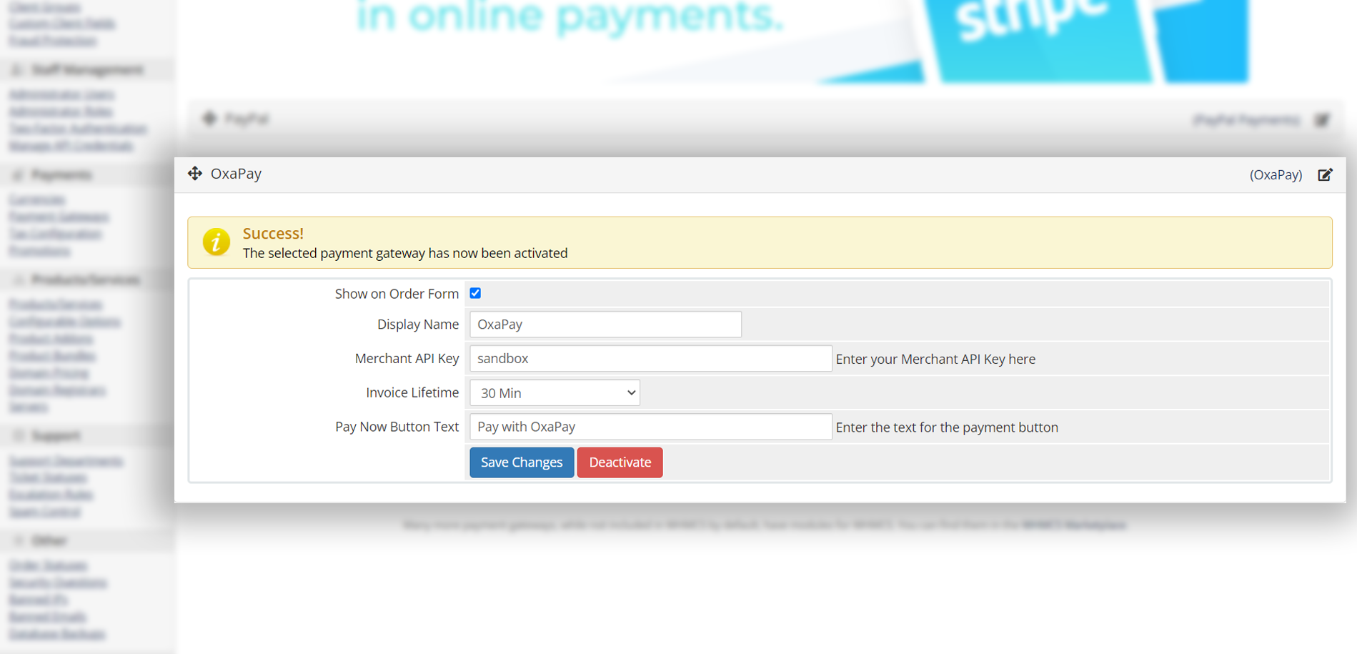 ## OxaPay Plugin For WHMCS