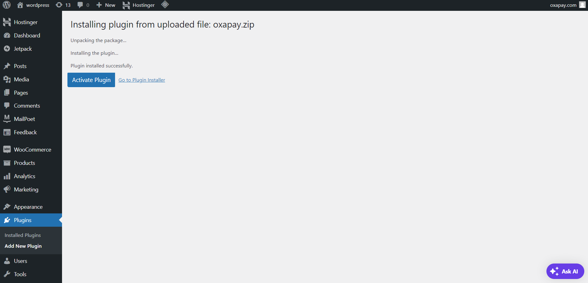 2. Once the plugin is installed, click on "Activate Plugin" to enable it.